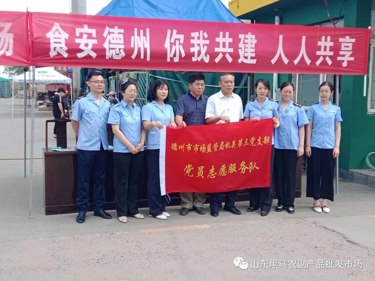 7月2日上午,在慶祝中國共產(chǎn)黨成立 99 周年之際,德州市市場監(jiān)管局黨組成員、副局長邊家山帶領(lǐng)機關(guān)第三黨支部部分黨員,在黑馬農(nóng)批市場開展慶“七一”“你送我檢” 進市場活動。