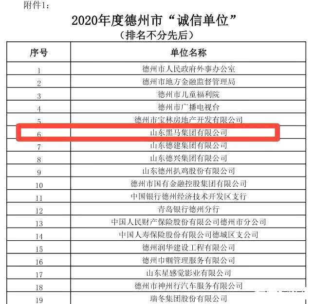 近日,山東黑馬集團(tuán)獲評2020年度德州市“誠信單位”榮譽(yù)稱號,黑馬農(nóng)副產(chǎn)品批發(fā)市場獲評2020年度德州市“誠信示范街區(qū)”榮譽(yù)稱號。