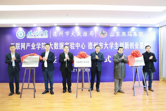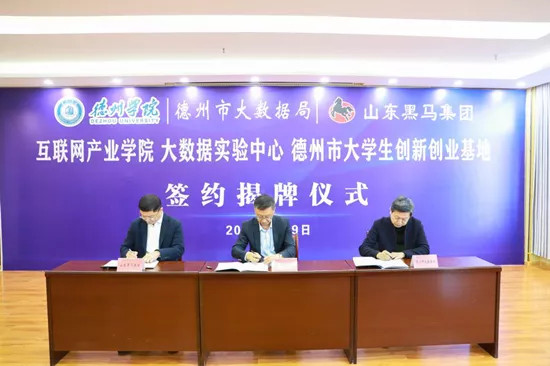 活動(dòng)現(xiàn)場(chǎng),德州學(xué)院與市大數(shù)據(jù)局、山東黑馬集團(tuán)校政企三方簽署合作協(xié)議,同時(shí)為“互聯(lián)網(wǎng)產(chǎn)業(yè)學(xué)院”、“大數(shù)據(jù)實(shí)驗(yàn)中心”、“德州市大學(xué)生創(chuàng)新創(chuàng)業(yè)基地”揭牌。