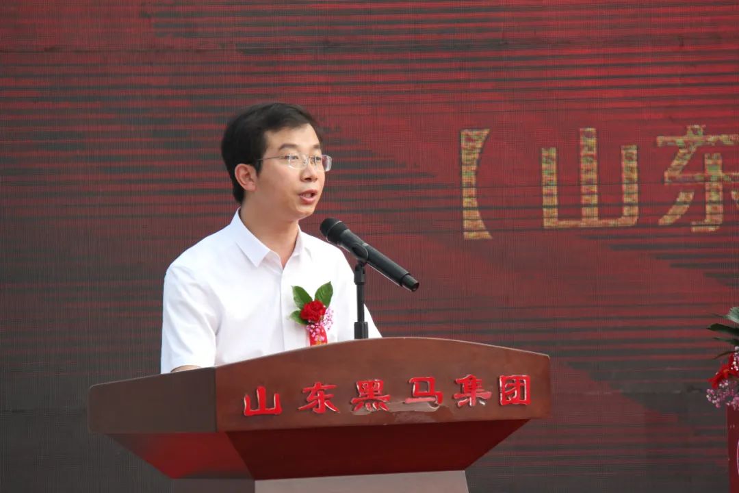 活動(dòng)現(xiàn)場(chǎng)人聲鼎沸,彩旗飄揚(yáng),洋溢著喜氣氛圍,黑馬集團(tuán)董事長(zhǎng)劉玉江為舞獅點(diǎn)睛。