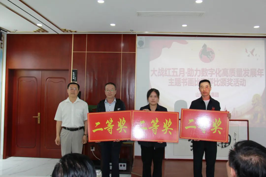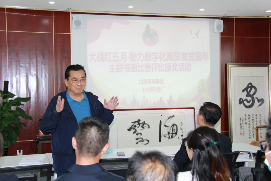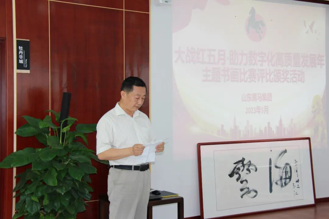 翰墨禮贊新時代,丹青描繪新征程。為學習貫徹二十大精神,落實集團“數(shù)字化高質量發(fā)展年”相關要求,助力集團“大戰(zhàn)紅五月”再創(chuàng)佳績,5月27日,由黑馬集團工會舉辦的“大戰(zhàn)紅五月·助力數(shù)字化高質量發(fā)展年”主題書畫比賽頒獎活動在集團總部辦公樓職工之家隆重舉行。集團董事長,集團黨委書記、執(zhí)行總裁劉揮進,執(zhí)行總裁楊青東,副總裁姜瑞杰,工會主席李華以及來自各集團部門的20余名書畫愛好者參加本次活動。