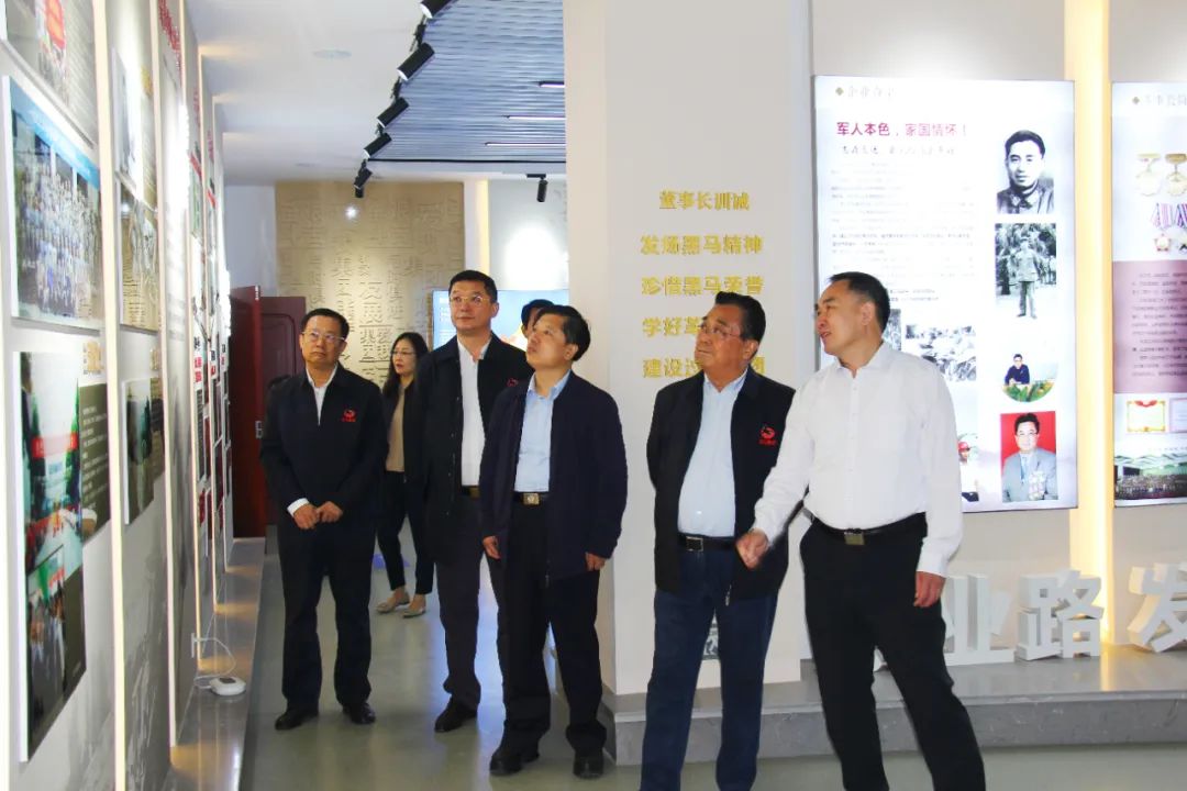 薛文海一行首先參觀了黑馬集團(tuán)榮譽(yù)展廳、職工之家、黨建活動(dòng)室、書畫室等地,觀看了黑馬集團(tuán)退役軍人專題片,并詳細(xì)聽取了集團(tuán)發(fā)展歷程、產(chǎn)業(yè)布局及董事長(zhǎng)劉玉江創(chuàng)業(yè)歷程等基本情況。
