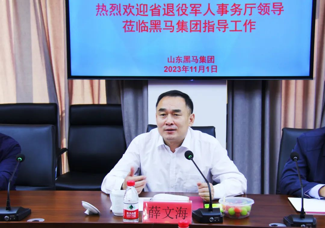 11月1日上午,山東省退役軍人事務(wù)廳思想政治和權(quán)益維護(hù)處處長(zhǎng)薛文海來黑馬集團(tuán)調(diào)研指導(dǎo)工作。德州市退役軍人事務(wù)局黨組成員、副局長(zhǎng)王國琦,思想政治和權(quán)益維護(hù)科科長(zhǎng)王廣智;集團(tuán)董事長(zhǎng)劉玉江,執(zhí)行董事長(zhǎng)、總裁劉輝東,黨委書記、執(zhí)行總裁劉揮進(jìn)等陪同。