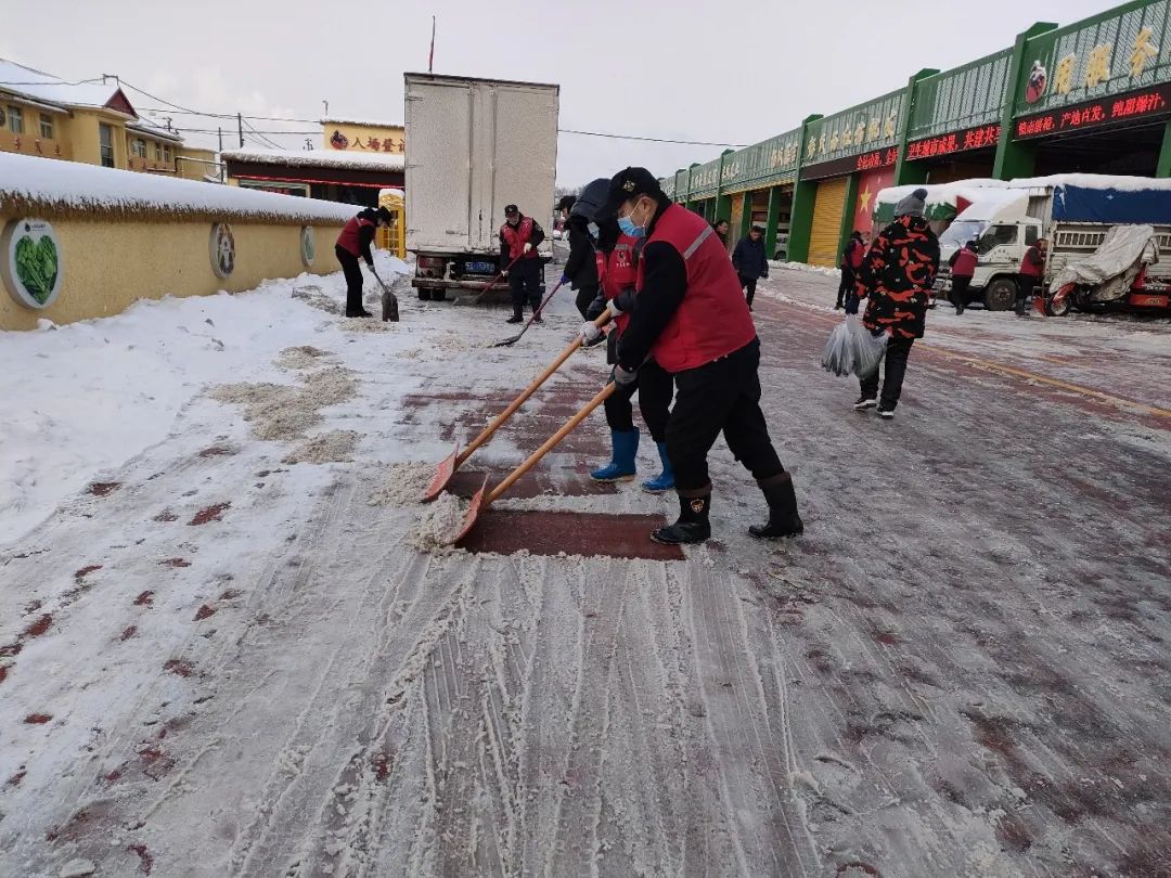 市場(chǎng)組織全員加班加點(diǎn)清除道路、棚頂積雪,檢查交易大棚、下水道等相關(guān)設(shè)施,確保市場(chǎng)道路出行的暢通安全與經(jīng)營(yíng)的穩(wěn)定。