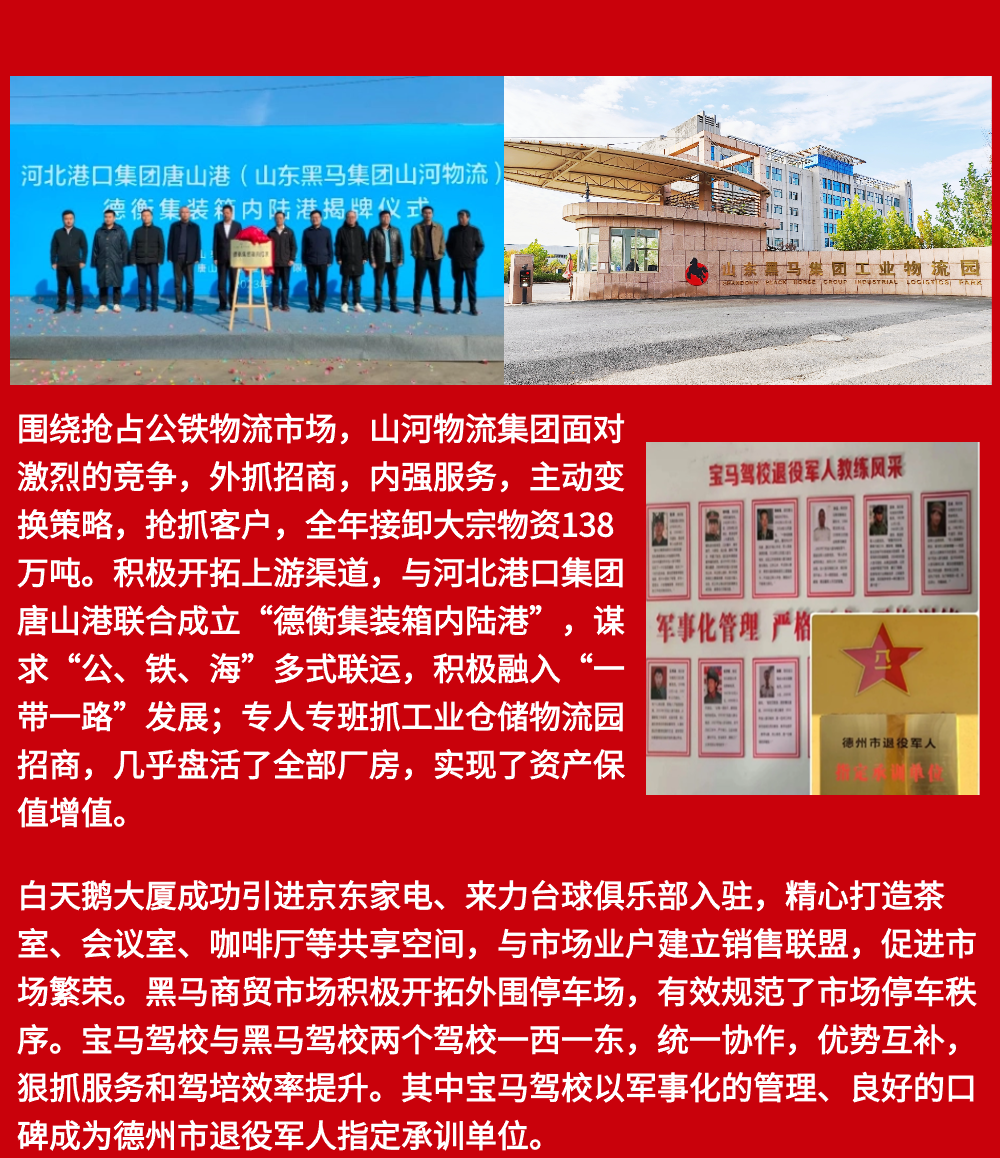 穩(wěn)進(jìn)中的黑馬,也必然是一個(gè)奔向勝利的黑馬!讓我們?cè)诟骷?jí)黨委和政府的正確領(lǐng)導(dǎo)和大力支持下,緊緊圍繞董事長(zhǎng)、董事會(huì)決策部署,凝聚成一往無(wú)前的發(fā)展勢(shì)能,以我為主,擔(dān)當(dāng)作為,不斷贏得優(yōu)勢(shì)、贏得主動(dòng),贏得未來(lái),不斷取得新勝利,用實(shí)干書寫黑馬集團(tuán)更加壯麗的新篇章!