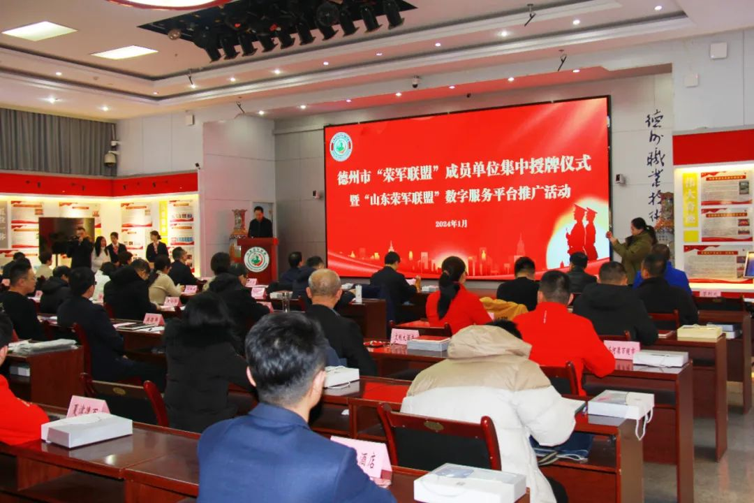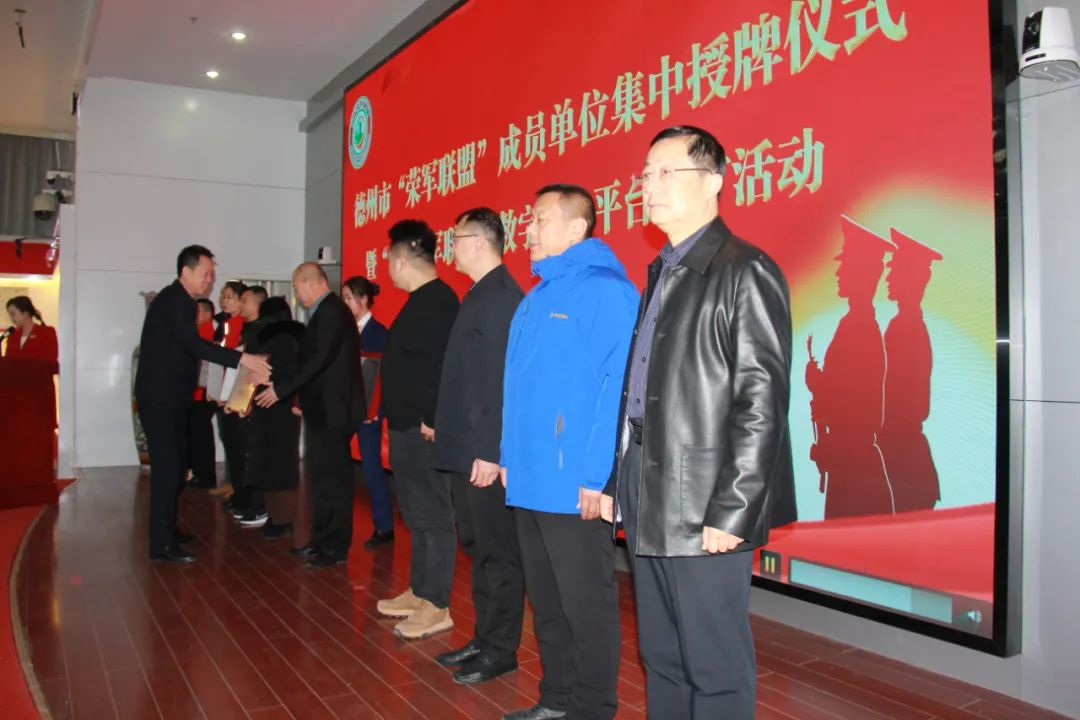 為認(rèn)真落實(shí)山東省退役軍人事務(wù)廳關(guān)于“榮軍聯(lián)盟”創(chuàng)建工作安排,鼓勵(lì)更多商家機(jī)構(gòu)加入“榮軍聯(lián)盟”,不斷擴(kuò)大優(yōu)待證應(yīng)用場(chǎng)景,在全社會(huì)營造擁軍優(yōu)撫濃厚氛圍。1月18日,在德州職業(yè)技術(shù)學(xué)院召開德州市“榮軍聯(lián)盟”成員單位授牌儀式暨“山東榮軍聯(lián)盟”數(shù)字服務(wù)平臺(tái)推廣活動(dòng)。省中心領(lǐng)導(dǎo)、市政府領(lǐng)導(dǎo)、市委宣傳部、市委改革辦、市教體局、市公安局、市民政局、市司法局、市人社局、市住建局、市交通運(yùn)輸局、市商務(wù)局、市文旅局、市衛(wèi)健委、市市場(chǎng)監(jiān)管局、市地方金融監(jiān)管局、德州軍分區(qū)政治工作處,以及“榮軍聯(lián)盟”成員單位代表、退役軍人代表、各縣市區(qū)退役軍人事務(wù)局分管負(fù)責(zé)同志、服務(wù)中心主任等參會(huì)。山東黑馬集團(tuán)黨委書記、執(zhí)行總裁劉揮進(jìn)參加授牌儀式。