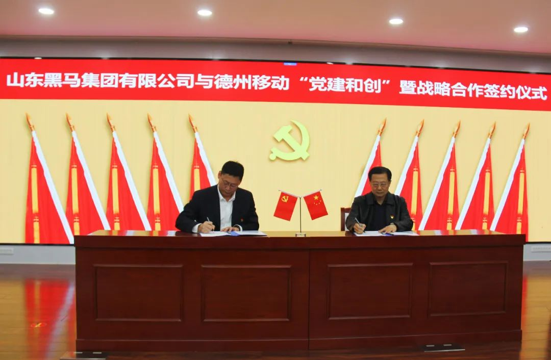 為推動(dòng)高質(zhì)量黨建引領(lǐng)企業(yè)高質(zhì)量發(fā)展,3月13日下午,黑馬集團(tuán)與中國(guó)移動(dòng)山東公司德州分公司開展了“黨建和創(chuàng)”活動(dòng)。黑馬集團(tuán)董事長(zhǎng)劉玉江,黨委書記、執(zhí)行總裁劉揮進(jìn),中國(guó)移動(dòng)山東公司德州分公司黨委書記、總經(jīng)理趙福忠等雙方領(lǐng)導(dǎo)班子成員及相關(guān)部門負(fù)責(zé)人參加活動(dòng)。