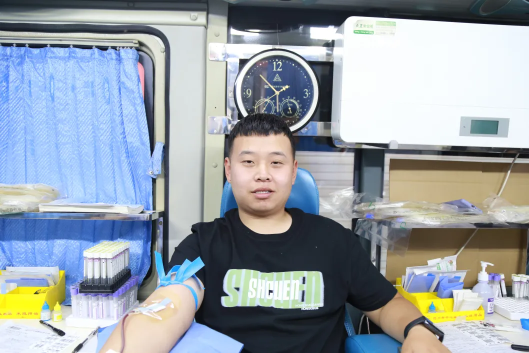 下午3時許,德州市中心血站采血車準時??吭诤隈R商貿(mào)城門口。天氣雖炎熱,但廣大職工們的獻血熱情絲毫不減,在血站工作人員的指引下依次進行身份登記、血樣化驗和采血準備等流程,醫(yī)務(wù)人員有條不紊,現(xiàn)場井然有序。符合獻血條件的職工依次接受醫(yī)護人員的采血,一股股承載著愛心的溫暖血液緩緩流入儲血袋,匯聚著黑馬人的責(zé)任與擔(dān)當(dāng)。