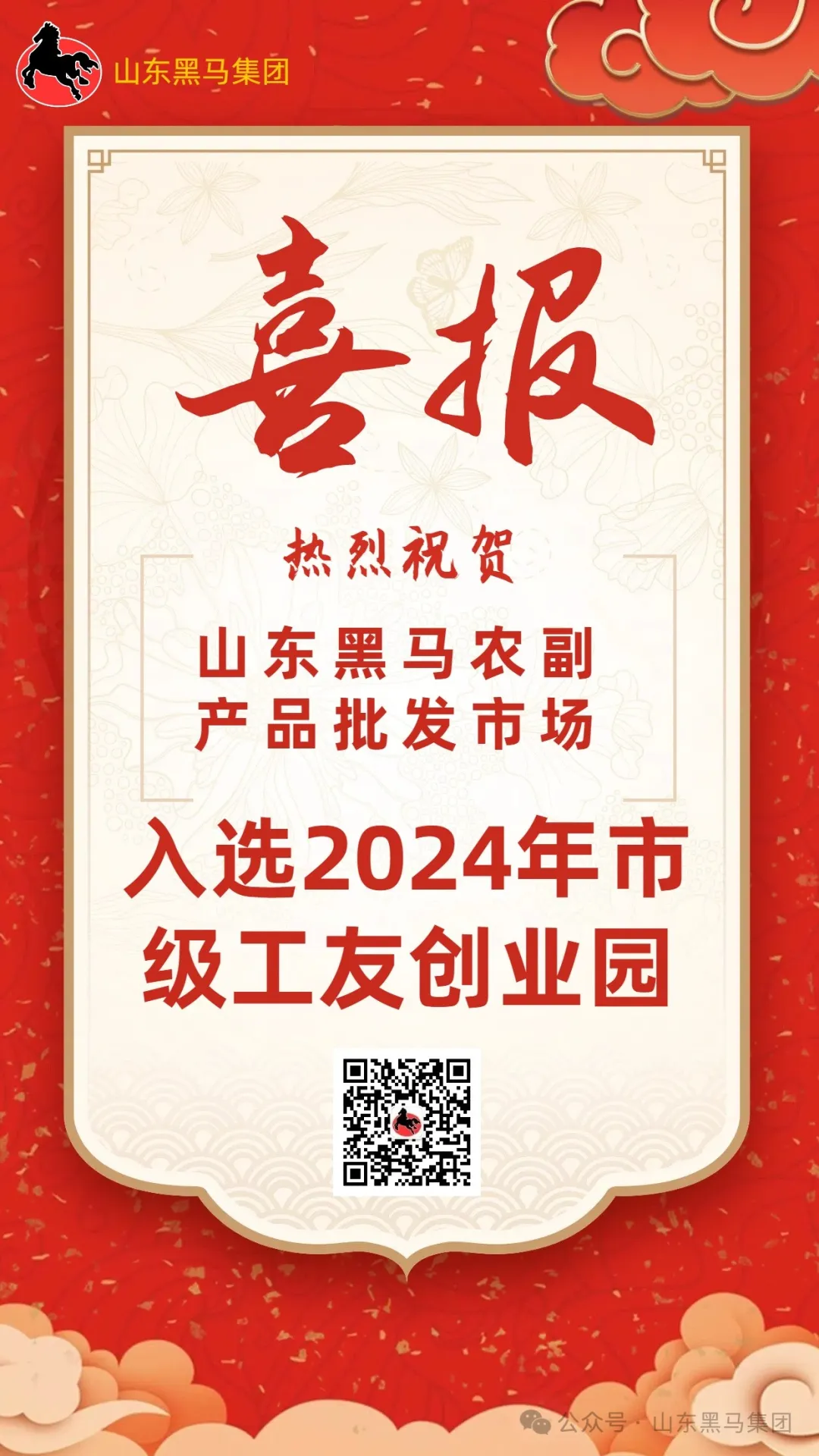 近日,山東黑馬農(nóng)副產(chǎn)品批發(fā)市場成功入選2024年市級工友創(chuàng)業(yè)園。