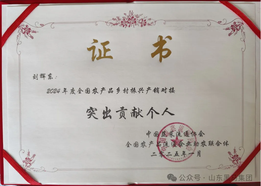 近日,在備受業(yè)內(nèi)矚目的全國農(nóng)產(chǎn)品流通企業(yè)助農(nóng)聯(lián)合體第三次會議上獲悉,黑馬集團憑借在農(nóng)產(chǎn)品流通領(lǐng)域做出的突出貢獻,被中國蔬菜流通協(xié)會、全國農(nóng)產(chǎn)品流通企業(yè)助農(nóng)聯(lián)合體評為“2024年度全國農(nóng)產(chǎn)品鄉(xiāng)村振興產(chǎn)銷對接 突出貢獻獎”,集團執(zhí)行董事長、總裁劉輝東榮獲“2024年度全國農(nóng)產(chǎn)品鄉(xiāng)村振興產(chǎn)銷對接突出貢獻個人”榮譽稱號。