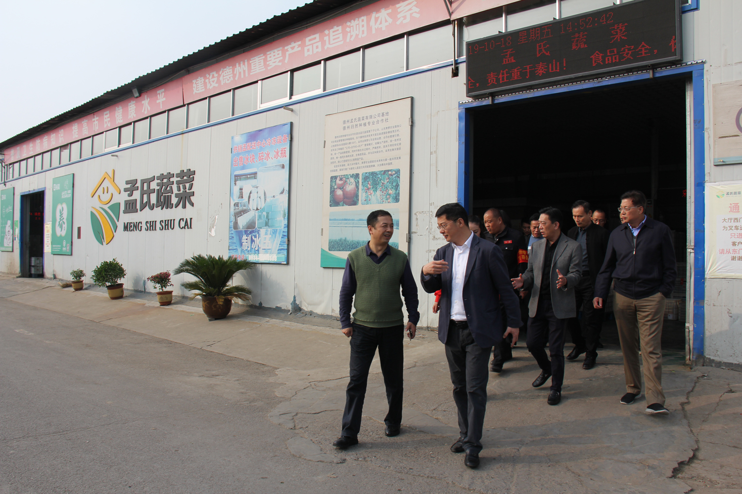 10月18日,商務(wù)部市場(chǎng)秩序司處長(zhǎng)于世偉,山東省商務(wù)廳市場(chǎng)秩序處處長(zhǎng)于乃勝,山東省商務(wù)廳市場(chǎng)秩序處二級(jí)調(diào)研員王曉濱,德州市商務(wù)局四級(jí)調(diào)研員楊海燕,德州市商務(wù)局市場(chǎng)秩序科副科長(zhǎng)李勤海等領(lǐng)導(dǎo)蒞臨山東黑馬集團(tuán)視察德州市重要農(nóng)產(chǎn)品追溯體系建設(shè)工作,山東黑馬集團(tuán)執(zhí)行董事長(zhǎng)、總裁劉輝東,執(zhí)行總裁楊青東,黑馬農(nóng)副產(chǎn)品批發(fā)集團(tuán)總經(jīng)理張偉陪同。