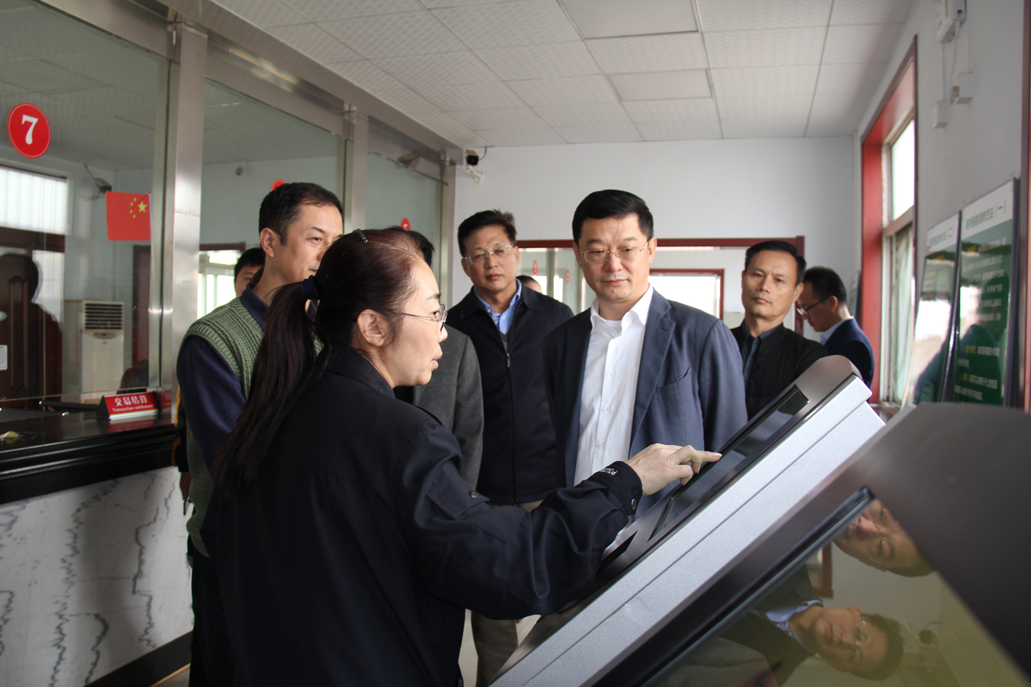 劉輝東總裁帶領(lǐng)大家分別到市場(chǎng)入場(chǎng)登記處參觀蔬菜進(jìn)場(chǎng)登記及入場(chǎng)檢測(cè)樣品采集情況、化驗(yàn)室對(duì)菜樣的化驗(yàn)情況、結(jié)算中心業(yè)戶充值結(jié)算情況、業(yè)戶使用交易一體機(jī)交易情況,詳細(xì)介紹了黑馬集團(tuán)及重要農(nóng)產(chǎn)品追溯體系建設(shè)運(yùn)營(yíng)情況及現(xiàn)階段所取得的成果。于世偉處長(zhǎng)對(duì)黑馬農(nóng)批市場(chǎng)追溯建設(shè)所取得的成果予以充分肯定,并就下一步工作提出了重要建議。