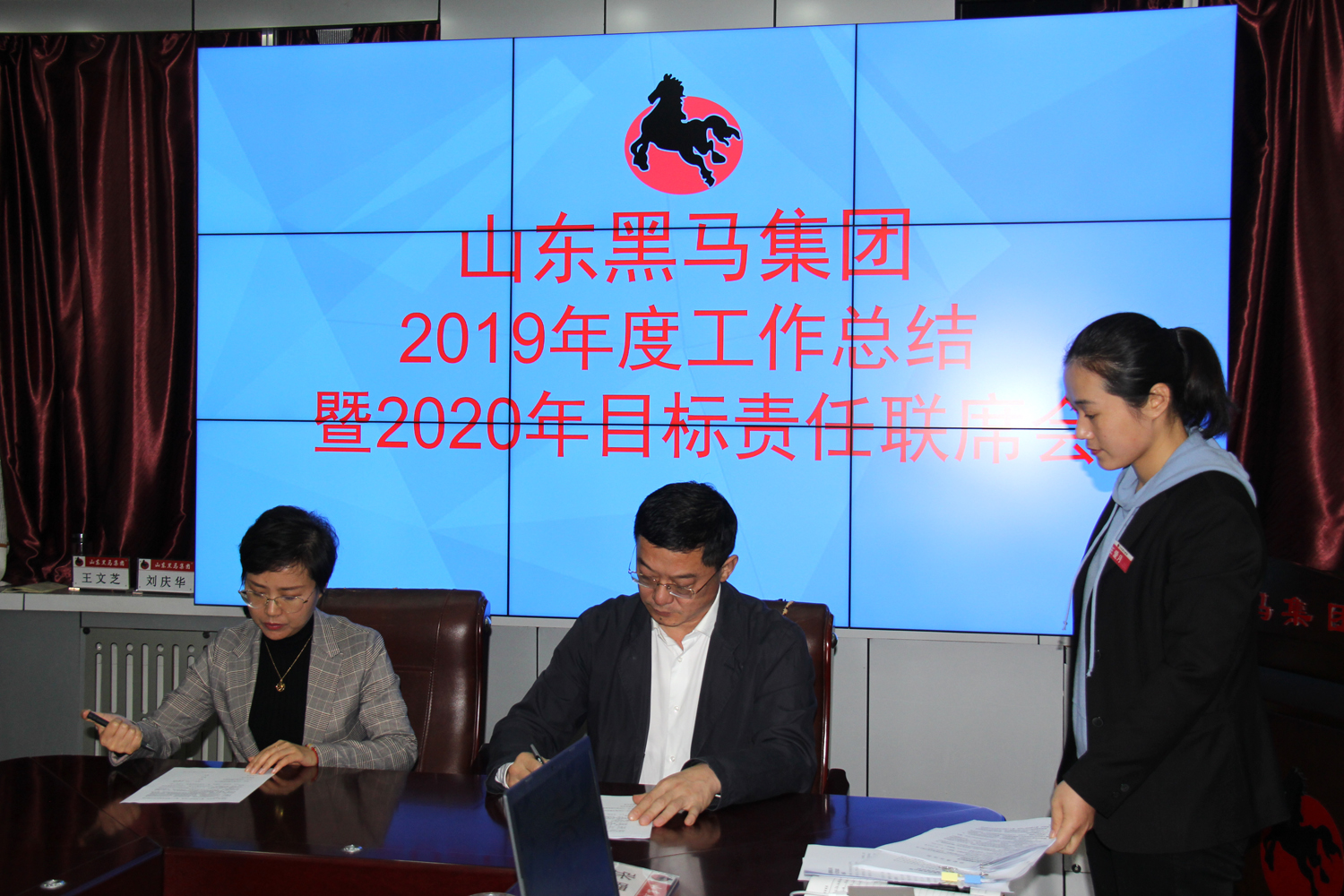 12月21日,山東黑馬集團(tuán)召開了2019年度工作總結(jié)暨2020年目標(biāo)責(zé)任聯(lián)席會。會上,黑馬房地產(chǎn)集團(tuán)、黑馬農(nóng)批集團(tuán)、黑馬商貿(mào)集團(tuán)、黑馬金融集團(tuán)、黑馬山河物流集團(tuán)、黑馬新興多元集團(tuán)分別匯報(bào)工作情況后,審議了黑馬集團(tuán)工作總結(jié),各集團(tuán)簽訂了《2020年目標(biāo)責(zé)任書》、《2020年安全廉政責(zé)任書》。